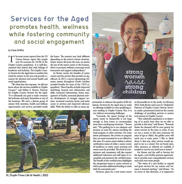 A story I wrote about the Duplin County Services for the Aged and their program offerings was published in the Duplin Medical Guide in July 2022.